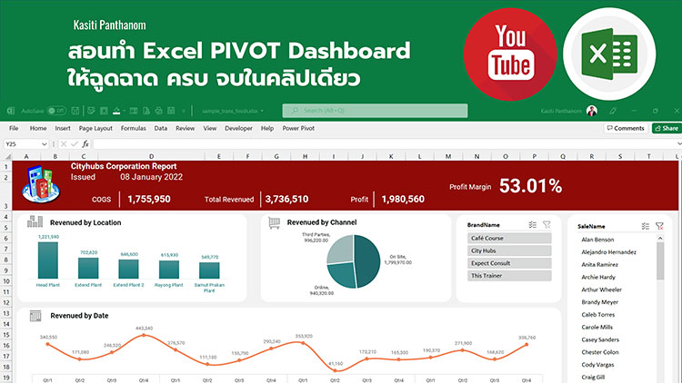Tips นี้ เป็นการสอนทำ Dashboard ด้วย Excel โดยใช้การทำงานผ่าน Pivot Table และตกแต่งด้วย Object ต่าง ๆ สอนตั้งแต่เริ่มต้นจนทำเป็น จบในคลิปเดียวไปเลยครับ